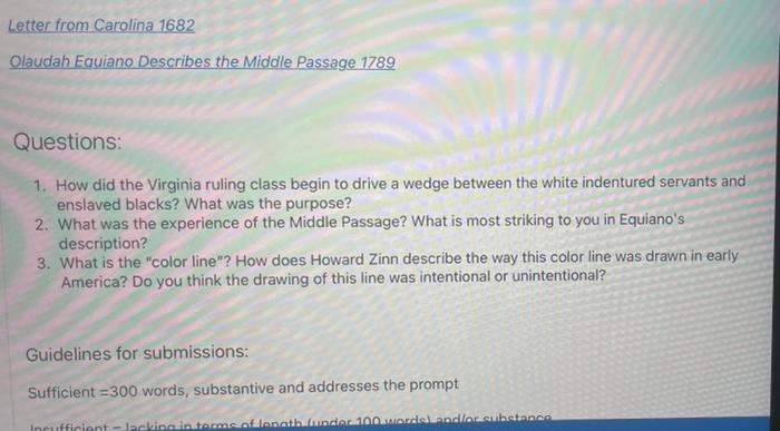 Letter From Carolina 1682 Olaudah Equiano Describes Chegg Com